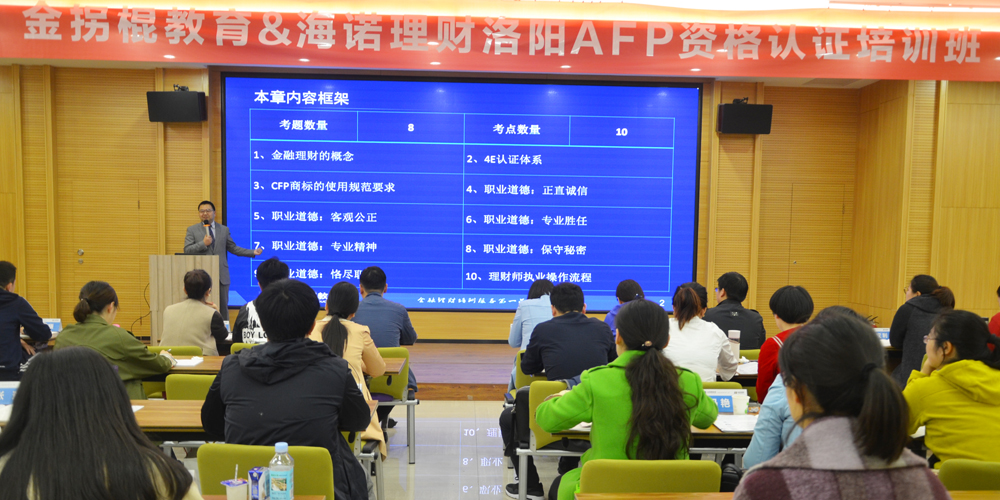 汗水洒满洛阳城,用心办好洛阳班,服务感动洛阳人——在金拐棍教育董事长刘洪欣先生对洛阳班的工作指示下,洛阳AFP资格认证培训百人大班顺利开启。